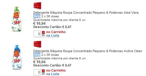 € 16.94 - 8.47 (desconto em cartão Continente) - 4.00 (vale de desconto SKIP) = € 4.47