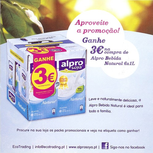 A RC também encontrou, num Pingo Doce, Alpro Soya Leite 1L com promoção Experimente Grátis até Julho.