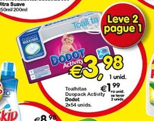 De entre as promoções disponíveis, de destacar a promoção de toalhitas DODOT, limitada a lojas Parking.