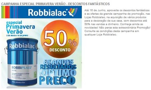 Depois da Dyrup, é a vez da Robbialac apresentar uma promoção com descontos até 50%.