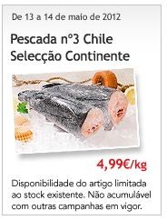 Em relação à pescada chilena posso dizer que no Jumbo desde o dia 8 e até ao dia 20 de Maio - Pescada Congelada Nº3 S/cabeça Chile Kg De Peso Liquido, está a 4,48€. Não vi, nem saboreei a qualidade de uma e de outra, mas aparentemente referem-se ao "mesmo tipo de produto" ....