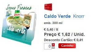 € 1.62 - € 0.41 (desconto de 25% em cartão continente) - € 0.50 (vale de desconto Revista Saberes e Sabores)