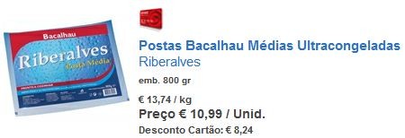 Eu fui hj ao Continente em Tavira e o bacalhau ribeiralves 800g posta média estava marcado com 25% desconto em cartão, e no site quando eu vi esta tarde estava c 75% marcado. Acabei por ñ arriscar a comprar p ver qual o desconto final, ja havia bastante confusão nas caixas.