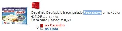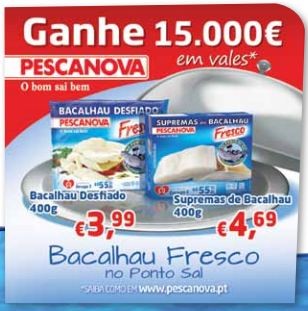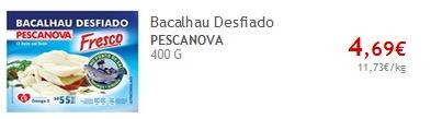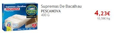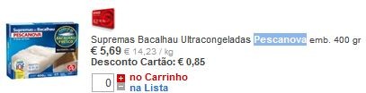 Para quem deseja fazer uso dos vales de desconto Pescanova (€3.00), para Supremas de Bacalhau ou Bacalhau Desfiado, aqui ficam os preços indicativos.