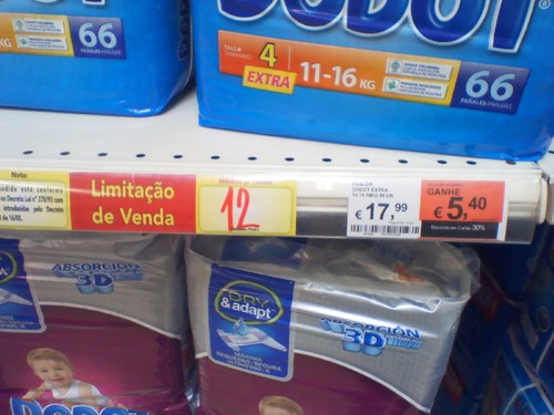 Dois esclarecimentos. Primeiro, que as fraldas Dodot que estão com 60% de desconto na loja online estão com apenas 30% de desconto na loja física.