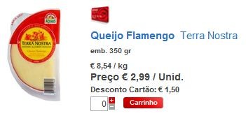 O que vi hoje no Continente de Vila do Conde foi queijo flamengo fatiado 700 gr com 50% desconto CC. 4.99 com €2,5 em CC. De 17 a 19 de Agosto
