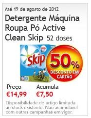 Detergente Máquina Roupa Pó Active Clean Skip, 52 doses com 50% de desconto (aqui)