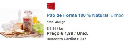 € 1.89 - € 0.47 (25% em todos os pães, até 30/08) - € 0.95 (cupão Revista Magazine Continente) = € 0.47