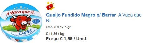 O queijo Vaca que Ri Sandwich 200g, que custa 1,89€, está com 50%.