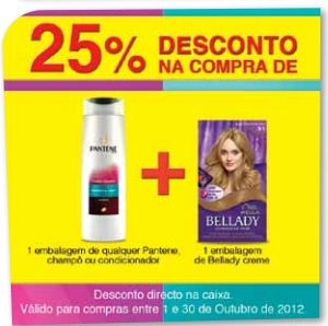 Oportunidade de acumular com vale de desconto Pantene (Para Mim). De notar que o produto Bellady da promoção é para creme e o vale de desconto Para Mim é para espuma.