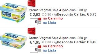 Bom, eu comprei Alpro, mas como não havia a margarina culinária nem sequer posso testar. Comprei itens que não estavam em promoção e são habituais da casa.