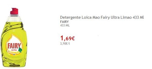 Com a utilização dos vales de desconto "Para Mim" de €1.00, é possível chegar muito próximo do valor de €1.00/litro. O preço ideal para detergente manual Fairy.