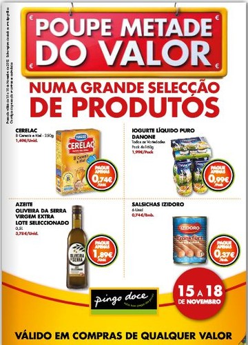 Atenção: Comprei a papa Cerelac por 0,69€ e não 0,74€ como vem no folheto. No folheto está que custa 1,49€ e eu paguei a 1,39€ com os 50% ficou a 0,69€ cada. Não sei se será só no Pingo Doce a que fui ou se é em todos.