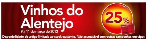 Poderá ser uma oportunidade para comprar vinhos do alentejo com desconto de 75%. Recomendo que, antes de procederem a uma compra avultada, comprem uma garrafa para verificar se o desconto acumula e depois voltem a entrar na loja para comprar o remanescente.