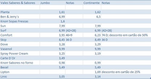 Antes de tudo acontecer, havia feito um pequeno exercício de comparação de preços entre as duas lojas on-line: Jumbo e Continente (porque eram as únicas disponíveis).